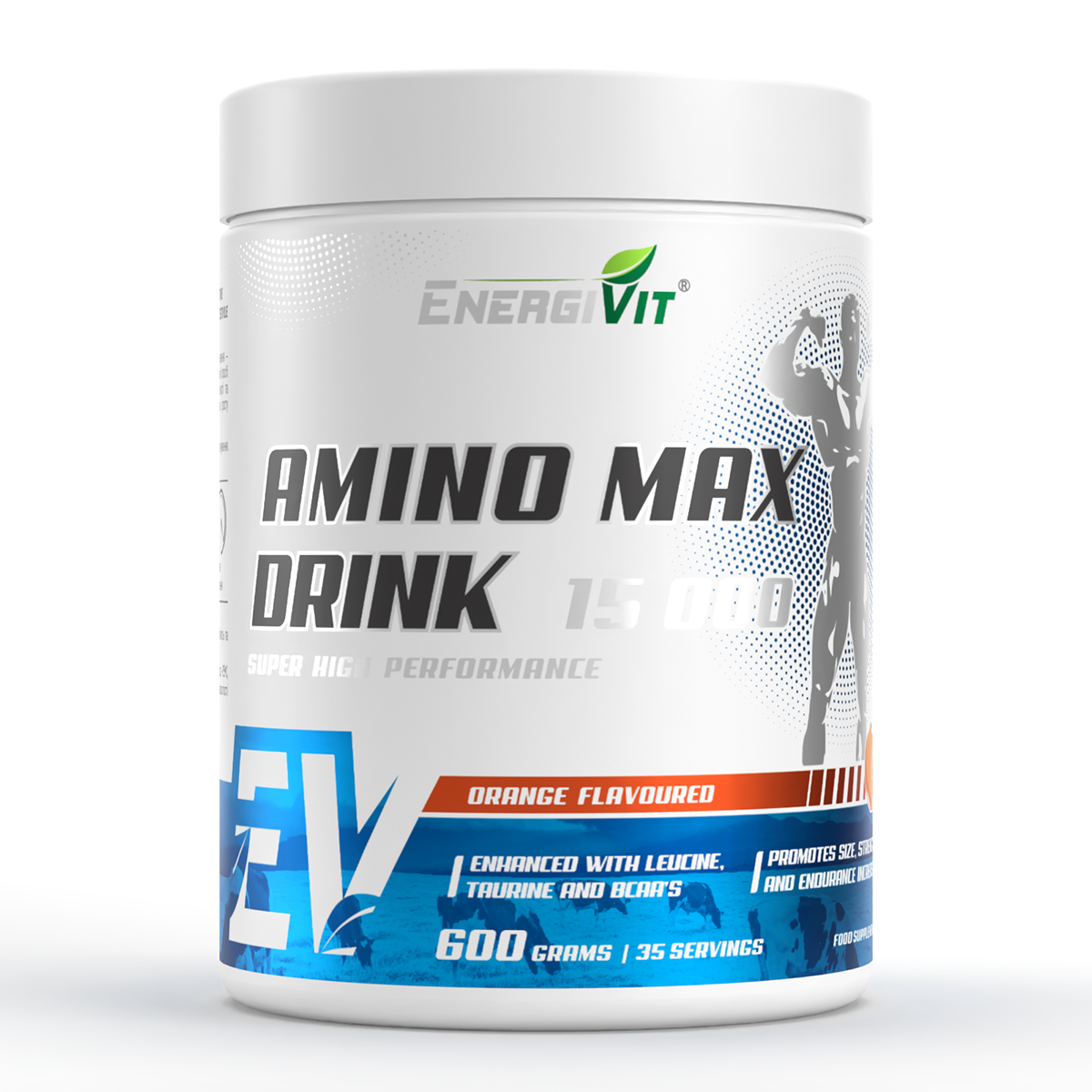 Амінокислоти від EnergiVit Amino Max Drink 15 000 / 600 g - харчова добавка, необхідна для повноцінної побудови і функціонування організму. Використовується для поповнення дефіциту білка, підтримки здоров’я і підвищення загального тонусу м'язів. Даний комплекс ефективно допомагає організму відновлюватися після важких та виснажливих тренувань і знімають м’язові болі. Амінокислоти значно швидше засвоюються в порівнянні з протеїном, що призводить до швидкого зростання м’язів і відновлення після тренувань і протягом дня. Основні переваги:- Допомагає підтримувати оптимальний рівень білка